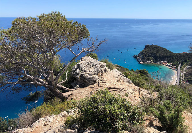 Da qui ci immetteremo su uno degli itinerari simbolo di Finale, il percorso della 24h. Pedaleremo su bellissimi single track, mai tecnicamente troppo difficili, con la vista che spazia su tutta la costa e sul promontorio di Capo Noli.