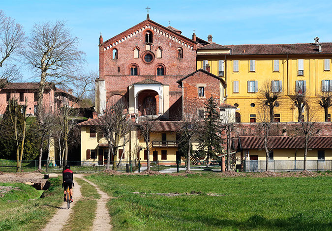 Percorso ad anello da fare in giornata per “gravellisti” allenati. Partenza da Milano, seguiremo la ciclabile del Naviglio Pavese fino alla Certosa di Pavia, da qui per strade di campagna fino a Pavia. Si risale poi il Ticino tra single track nei boschi e sterrati: si giungerà prima al ponte di barche di Bereguardo poi all'Abbazia di Morimondo. Tireremo brevemente il fiato seguendo la strada asfaltata del Naviglio di Bereguardo fino ad Abbiategrasso dove decideremo se ritornare verso Milano o giocarci le ultime energie su un bellissimo single track nel bosco, prima di imboccare strade di campagna che ci porteranno a Gaggiano e poi lungo il Naviglio fino alla “movida” di Milano per la meritata birra ghiacciata.