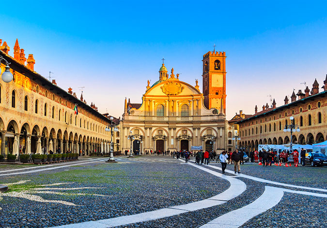 Un itinerario di 50 km all'interno del Parco del Ticino con partenza e arrivo da Vigevano. Pedaleremo lungo il fiume percorrendo bellissimi single track nei boschi che costeggiano il Ticino fino al ponte di barche di Bereguardo, che attraverseremo, per poi risalire l'altra sponda del fiume su strade sterrate e asfaltate tra le risaie con arrivo nella bellissima piazza Ducale di Vigevano.