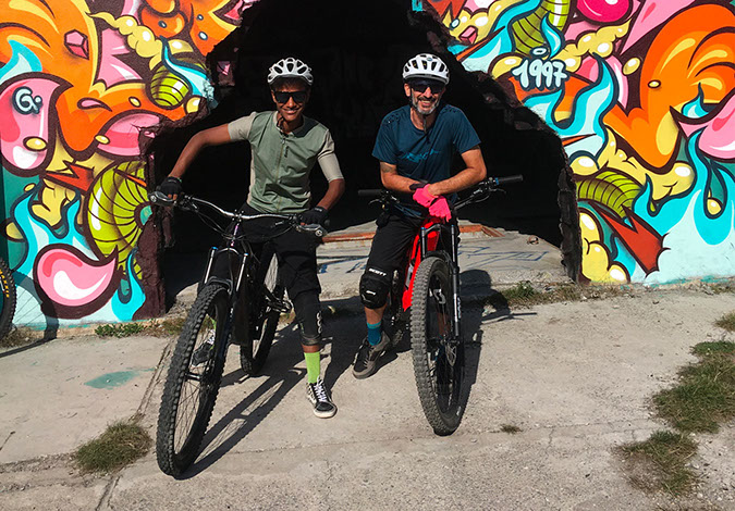 Con lo shuttle percorreremo la strada che da Final Borgo in 40 minuti ci porterà fino alla Base Nato, luogo mitico di Finale da dove partono molti dei trail storici dell’area outdoor. Dopo la vestizione e le foto tra i murales dell’ex base, prenderemo il trail del “Crestino”. mai troppo difficile, che attraversa tutto il bosco con curve e cambi di pendenza, poi ci collegheremo ad altri trail fino ad arrivare alle Manie. Da qui possiamo scendere dalla strada dei “Ponti Romani” o se ne abbiamo ancora dalla “Briga”, un trail un po’ più impegnativo.