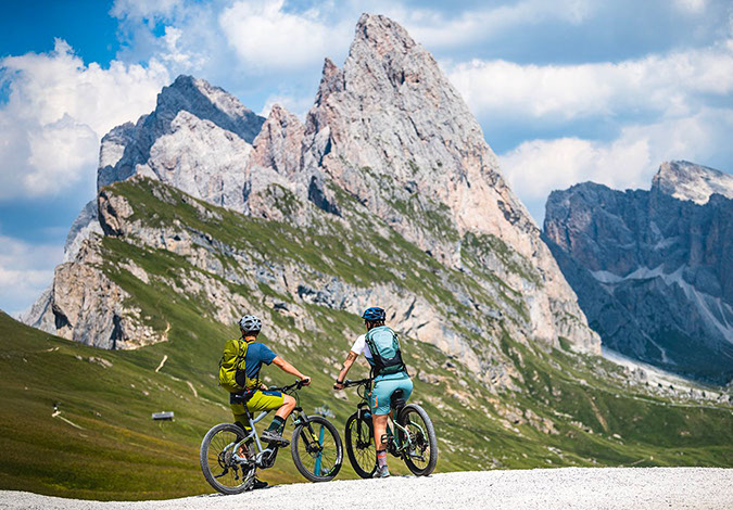 Il secondo giorno faremo un tour pedalato verso l’Alpe di Siusi, sempre con panorami spettacolari, partendo da Selva di Val Gardena ci dirigeremo in direzione di Ortisei dove prenderemo una funivia, per toglierci un po’ di dislivello e poi pedalare verso il massiccio dello Sciliar, facendo un giro ad anello di circa 36 km con 700 metri di dislivello positivo.