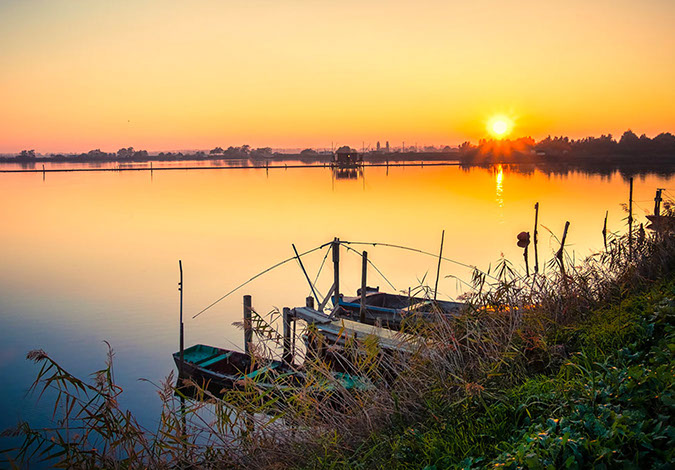 Il nostro viaggio partirà da Ravenna, la città di Teodora con le numerose chiese abbellite dai mosaici multicolore. Da quì ci dirigeremo verso la costa, attraverseremo la bellissima Pineta di San Vitale per poi spostarci verso la zona umida delle Valli di Comacchio che costeggeremo fino a giungere alla cittadina di Comacchio dove passeremo la notte. Ceneremo in uno dei suoi ristoranti, tra i caratteristici canali, gustandoci le primizie di pesce del Delta come l’anguilla e i frutti di mare.